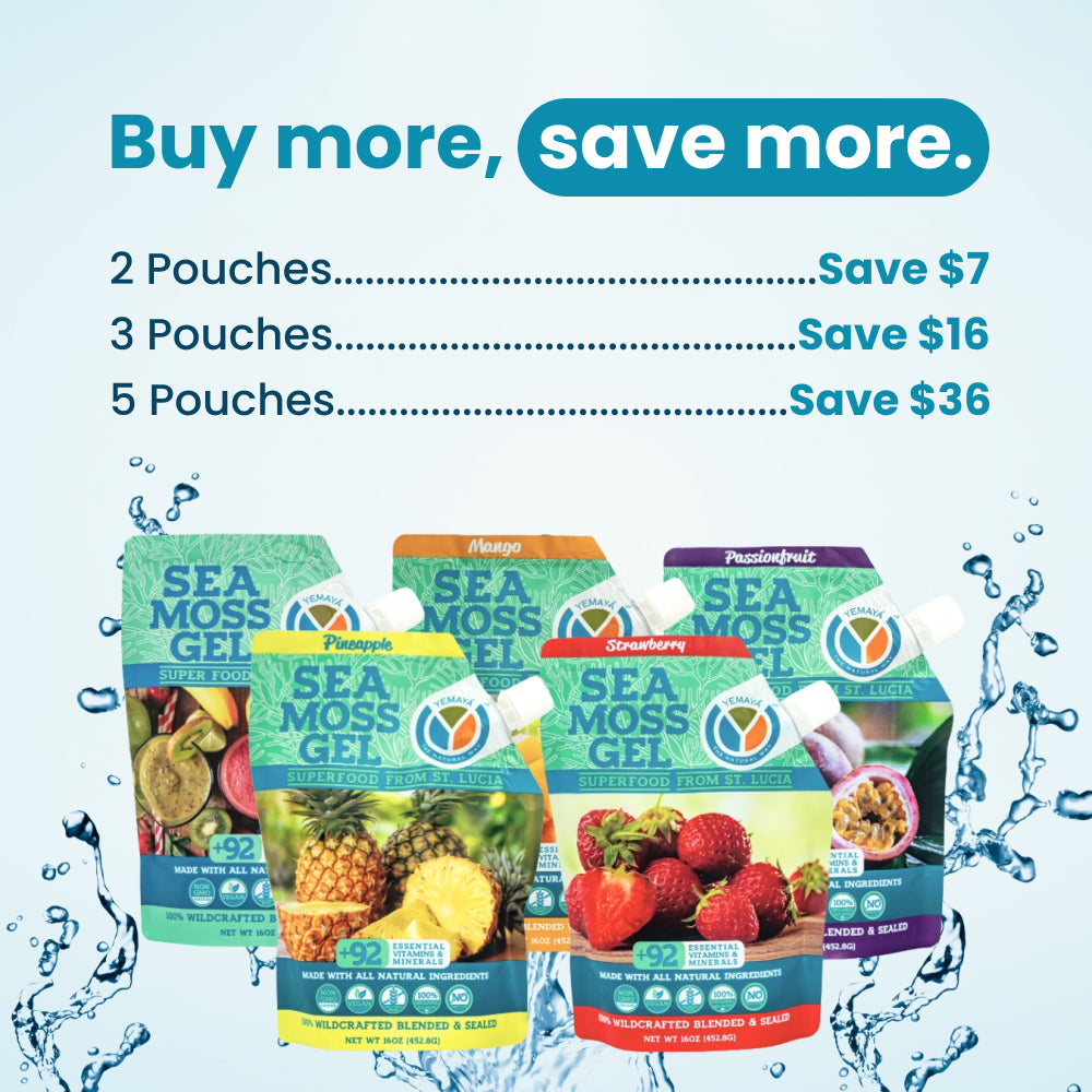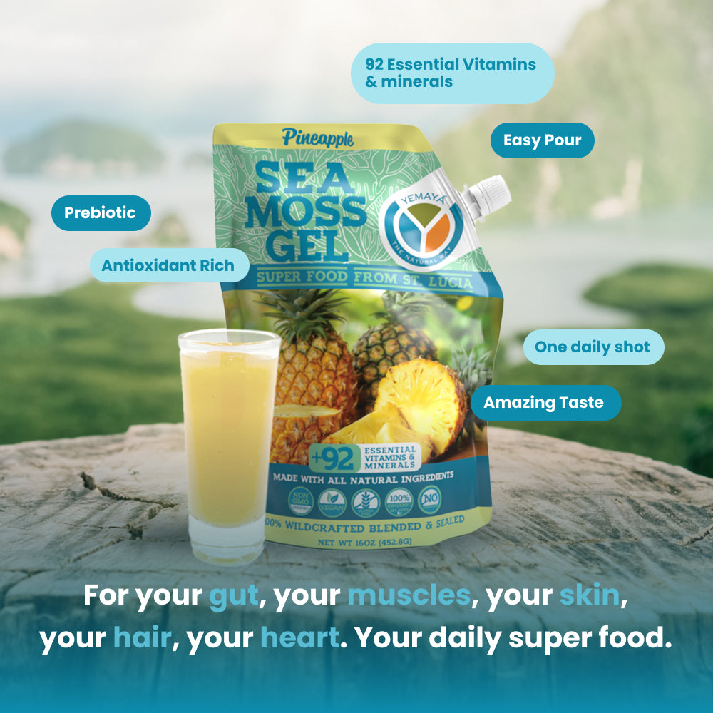 Yemaya Organic Sea Moss is 100% Wildcrafted from the Island of St. Lucia. Enjoy the benefits in its natural form or with one of our natural flavors; Mango, Strawberry, Pineapple, Passionfruit, Strawberry Banana and Natural.